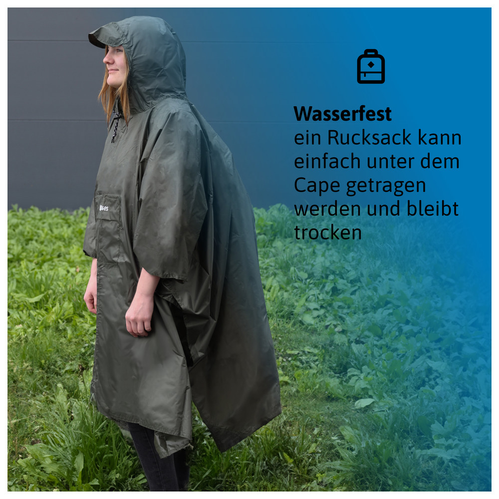 - Nachhaltigkeit: Unser Regenponcho ist wiederverwendbar, was nicht nur die Umwelt schont, sondern auch Ihr Budget entlastet. Ein umweltfreundlicher Begleiter für jedes Abenteuer.