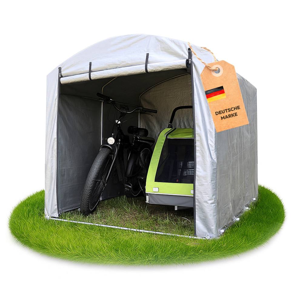 Trotz ihrer Stabilität ist die Fahrradgarage angenehm leicht, lässt sich kompakt zusammenfalten und bei Bedarf einfach aufhängen oder transportieren. Ideal für die Nutzung im Garten, auf der Terrasse, im Carport oder vor dem Haus - die mobile Garage für Ihr Fahrrad, auf die Sie sich verlassen können.