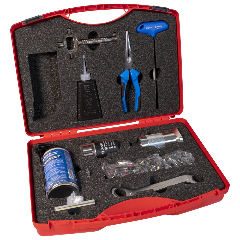 Alles was man für ein schnelles, problemloses und sauberes Ziehen des Schließzylinders benötigt ist übersichtlich in einem stabilen Koffer mit einem Schaumstoffeinsatz aus Industrie-Plastazote untergebracht: