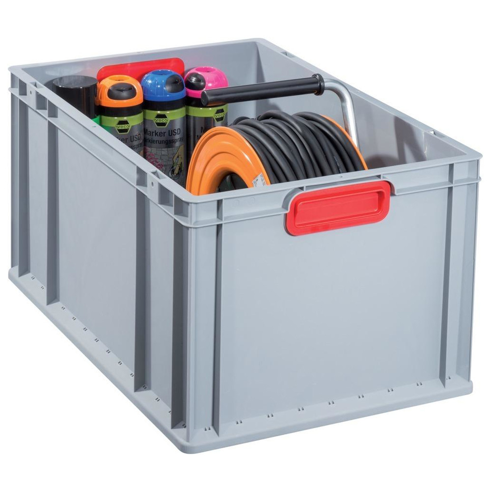 Allit EuroBox 632,600 x 400 x 320 mm, Griffe geschl., grau/rot