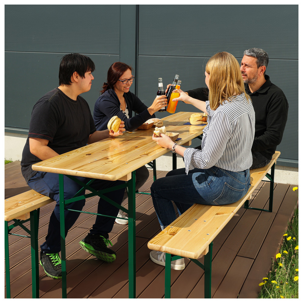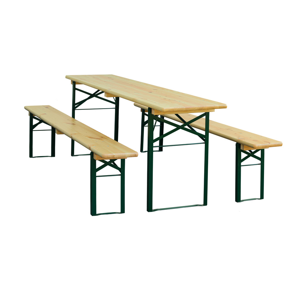 - Komplett-Set: Enthält zwei Bänke und einen Tisch, ideal für Feste im Freien