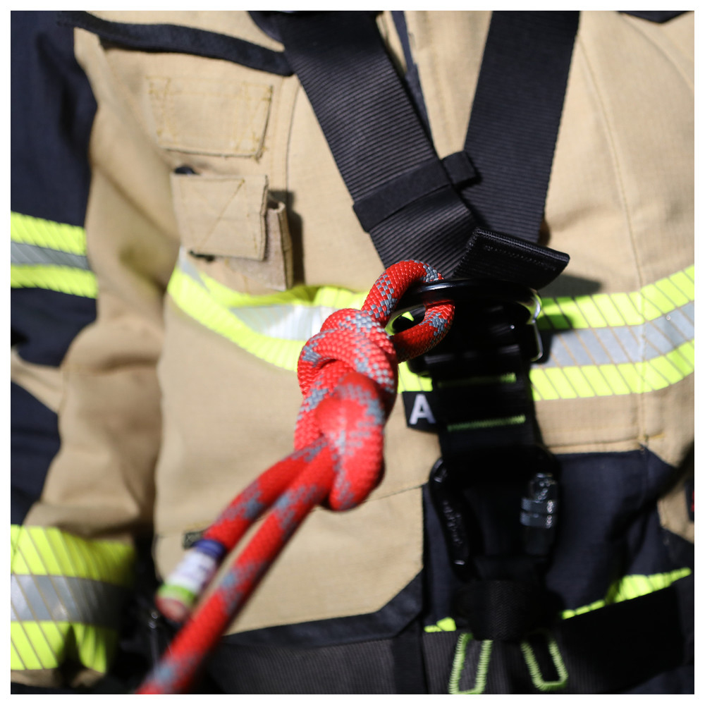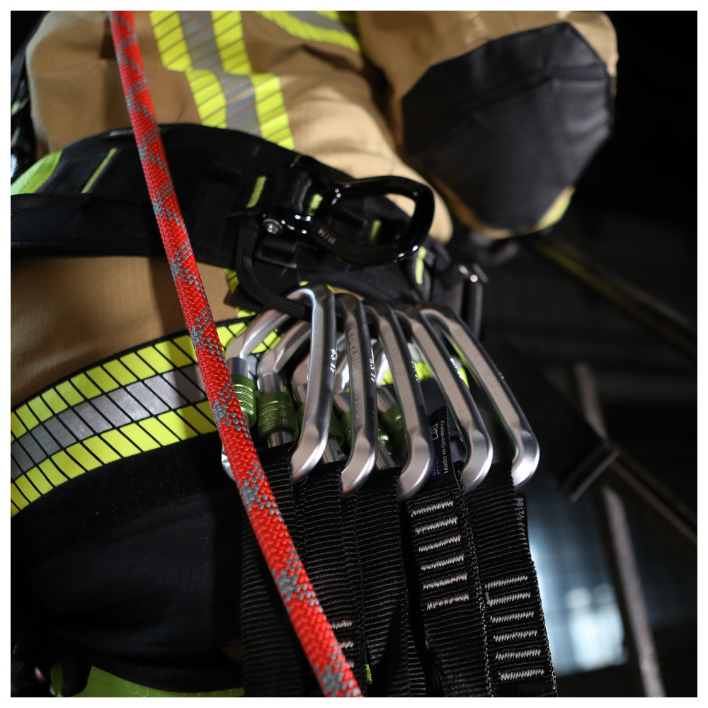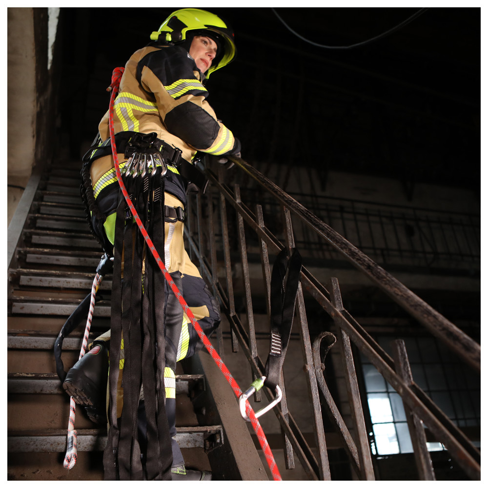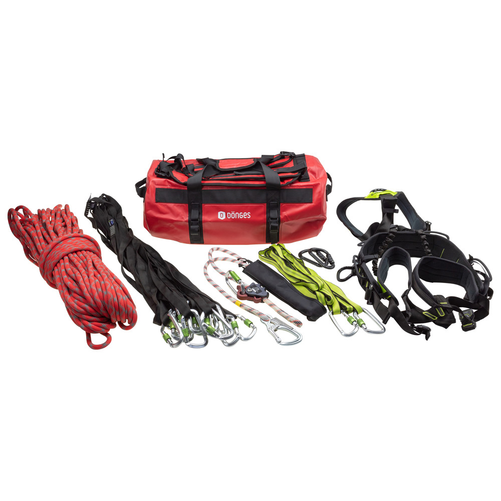 Complete equipment set, assembled according to DIN 14800-17 and stowed in a useful transport bag. For securing emergency workers in areas where there is a risk of falling. The set contains all the components required by DIN for efficient self-securing.