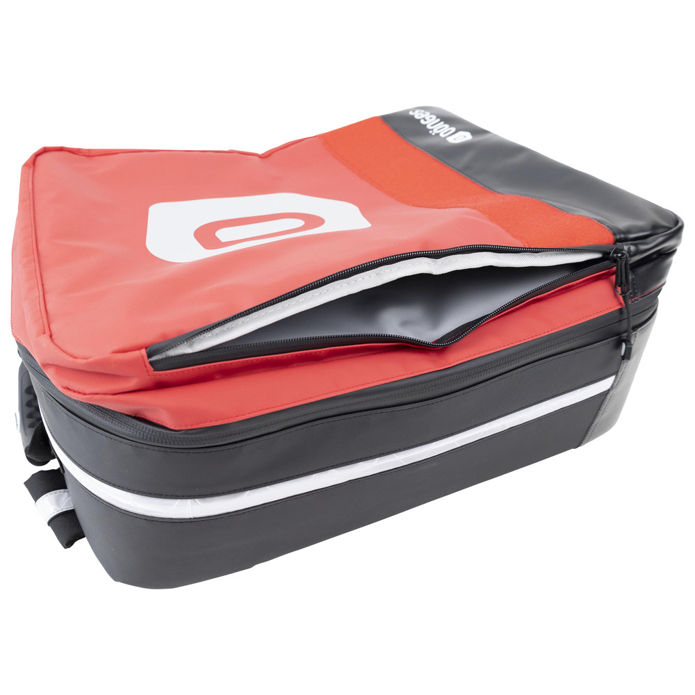 Der Rucksack ist aus extrem robustem und abwischbarem Planenmaterial gefertigt, das den Inhalt zuverlässig vor Feuchtigkeit schützt. Geschweißte Nähte sorgen zusätzlich für Wasserschutz. Dank ergonomischem Design und sorgfältiger Verarbeitung bietet der Rucksack hohen Tragekomfort. Die Reflexelemente an der Außenseite erhöhen die Sichtbarkeit bei schlechten Lichtverhältnissen und tragen zur Sicherheit der Einsatzkräfte bei. An der Front des Rucksacks befindet sich ein Klettstreifen zur Befestigung eines Reflexschildes.