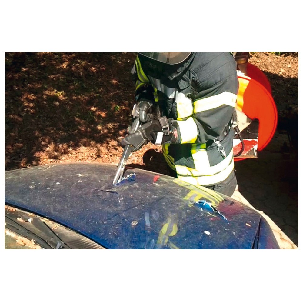 This small, very compact tool is the ideal tool for the first attack. The sturdy design allows it to function reliably even in the roughest conditions. The non-slip rubber handle provides support in every situation. The various integrated tools offer a solution to almost all problems. The tool can be used as an axe, sheet-metal cutter or as a cutting tool.
