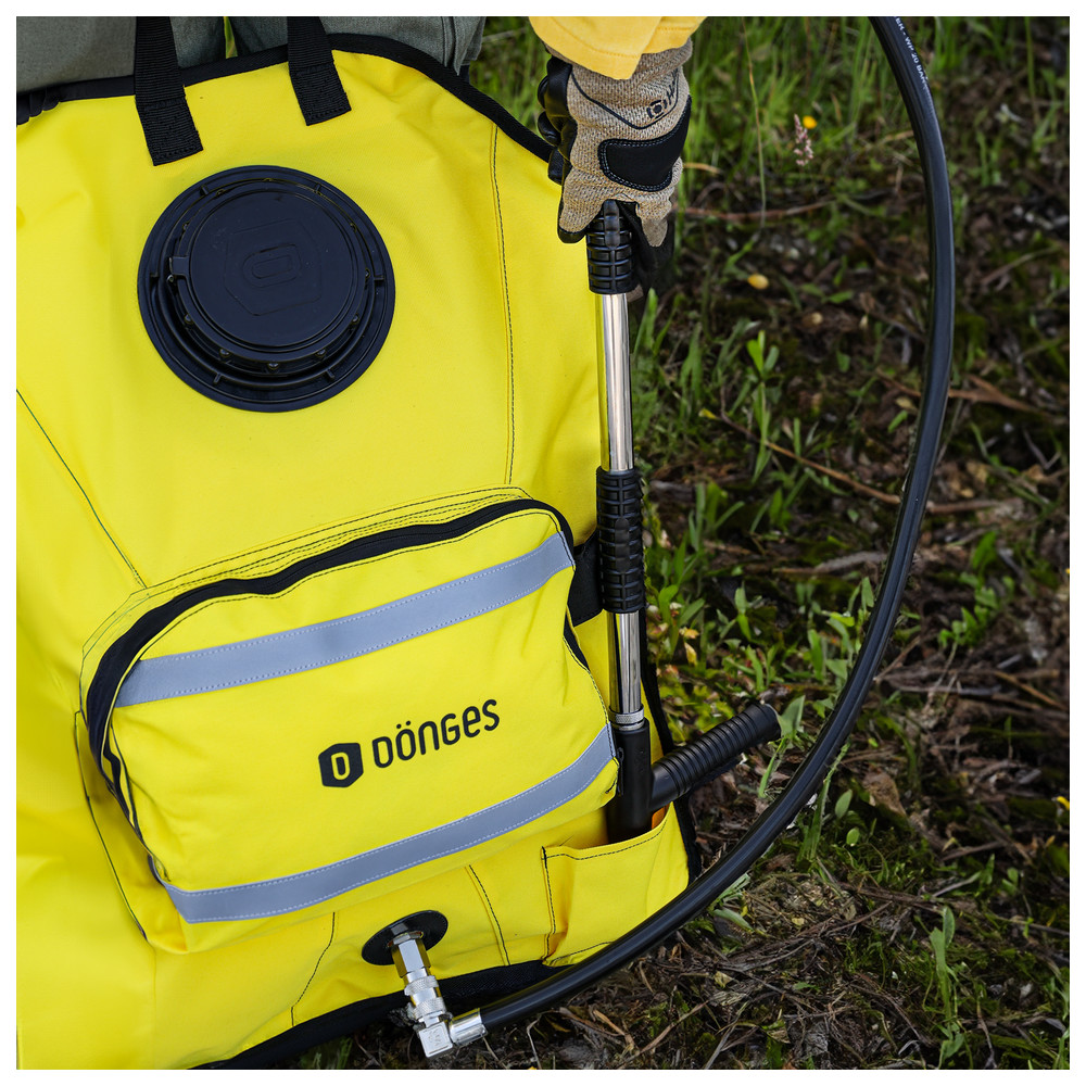 The Dönges firefighter backpack by Vallfirest is specifically designed for combating forest and vegetation fires. Its ergonomic design with padded shoulder straps and an adjustable chest strap ensures high carrying comfort, even during long operations. Thanks to the innovative valve system, the backpack can be quickly and easily filled, allowing for controlled water streams for effective firefighting.