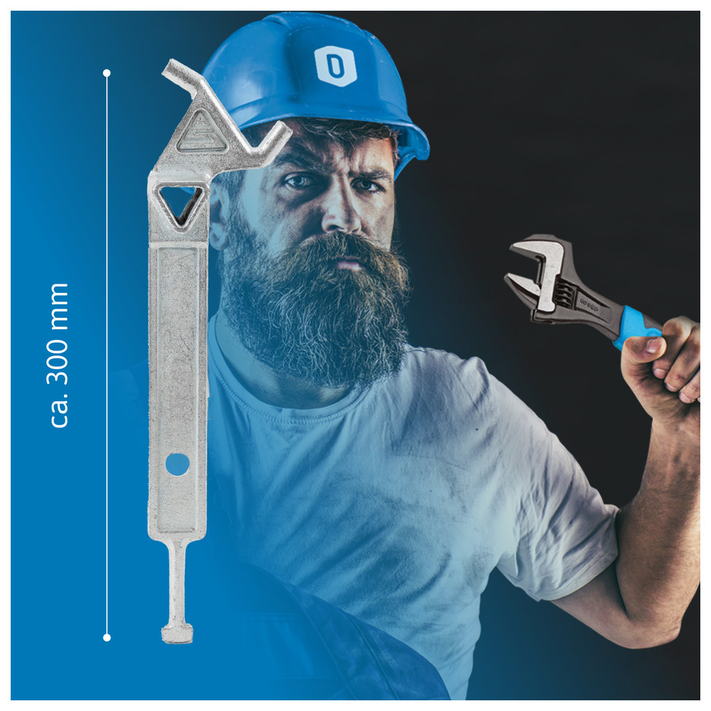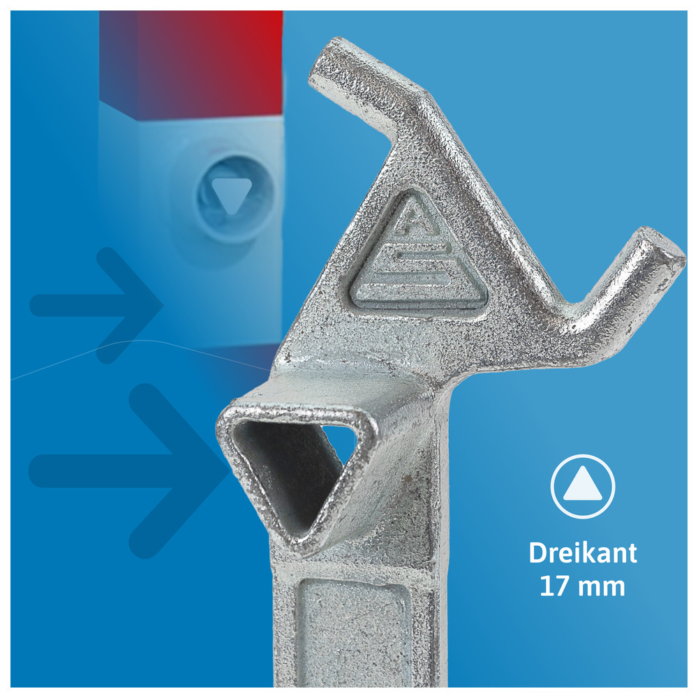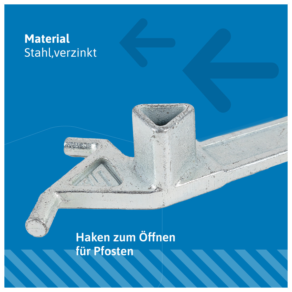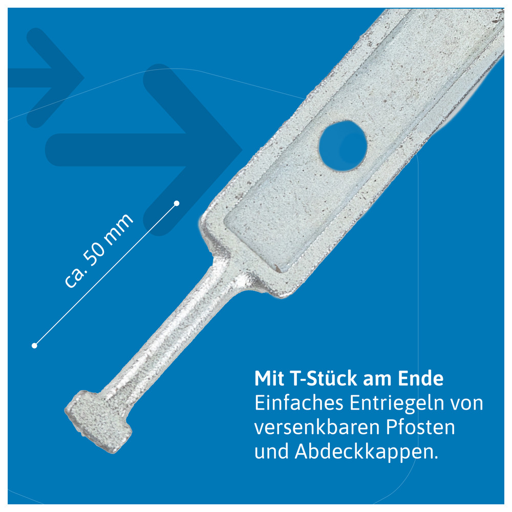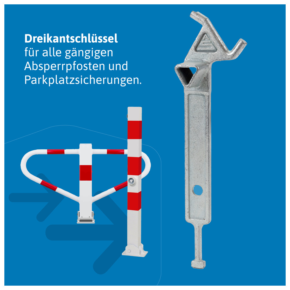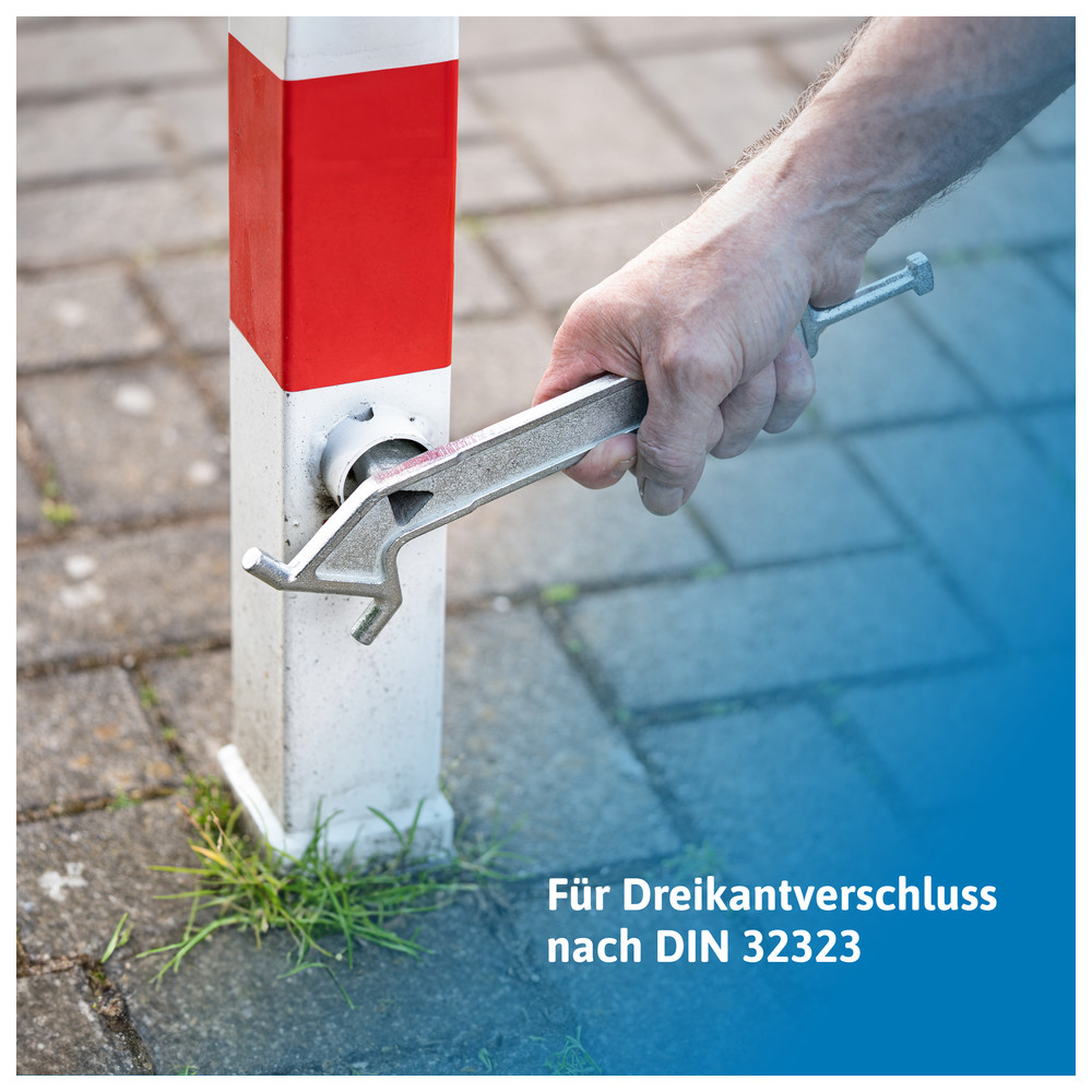 Bollard wrench made from annealed cast iron, especially for fire brigade and emergency vehicles. Suitable for all barrier posts in acc. with DIN 3222 and barriers.