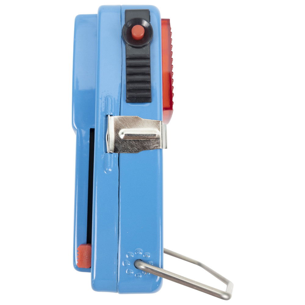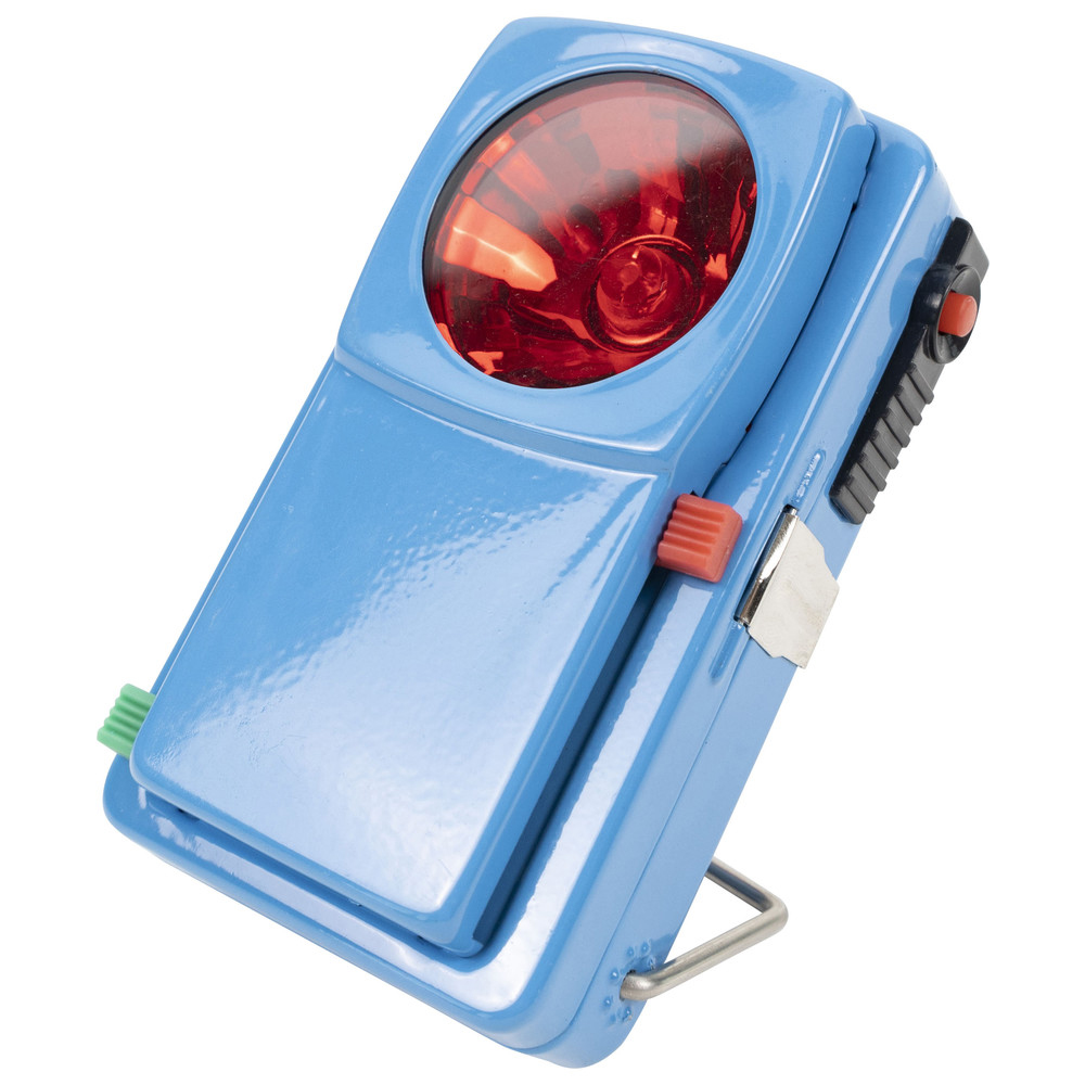 Proven metal flashlight with integrated signal function. The red and green filter disks are pushed over the light outlet with the sliders attached to the front.