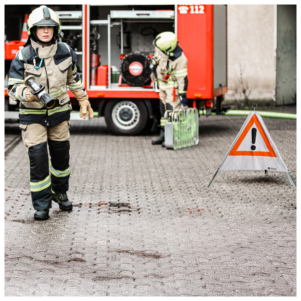 Advantage: the folding signals become very versatile. You only need to get one folding signal, but are equipped for every occasion. The matching velcro signs are available with standard texts. On request, you can also order a customised print. The velcro signs are only available in retroreflective versions.